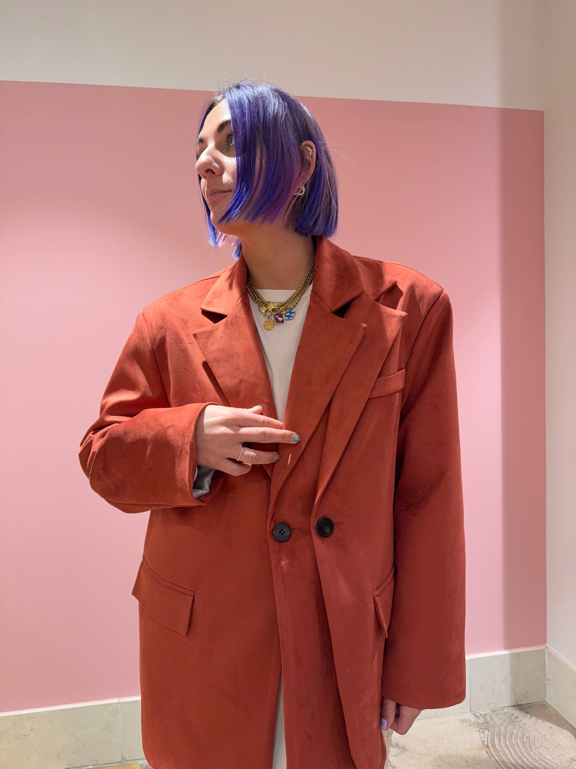 Blazer scamosciato con effetto doppio strato. Vestibilità over, taglia unica.