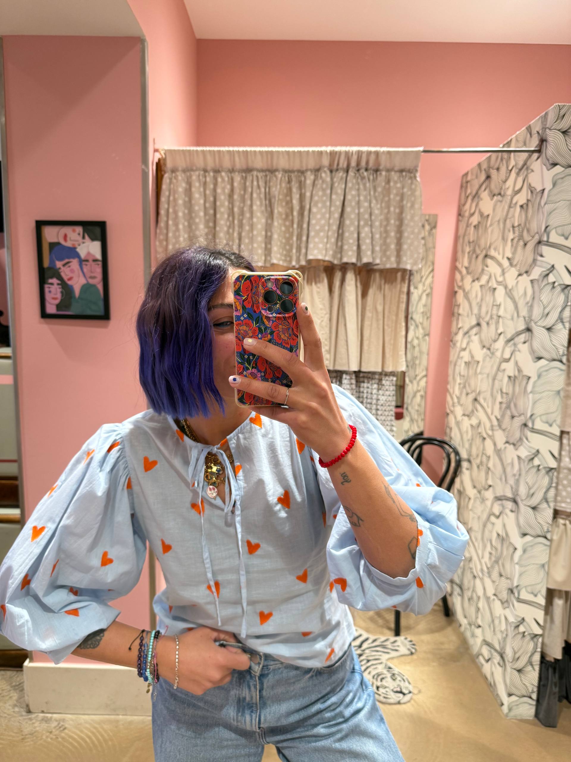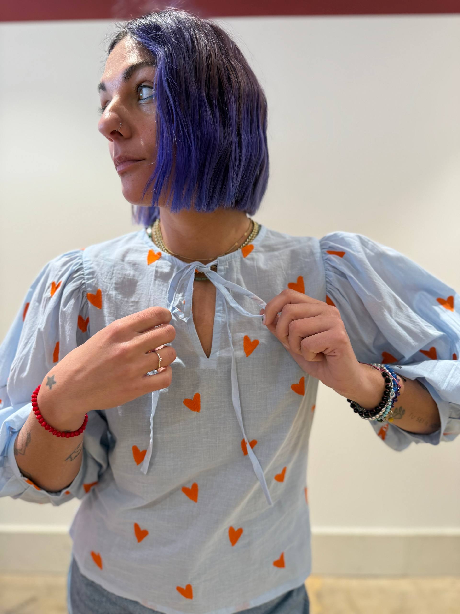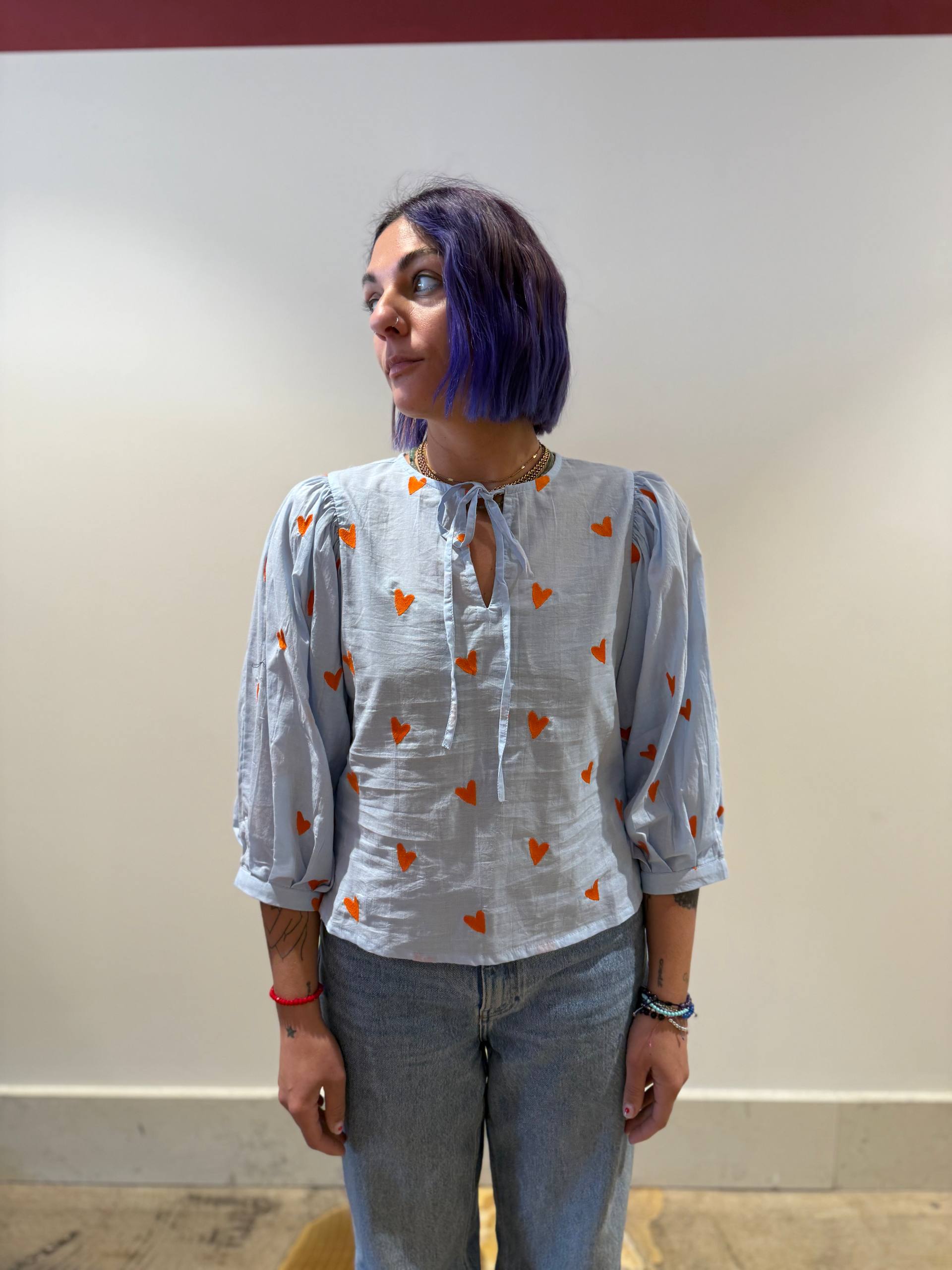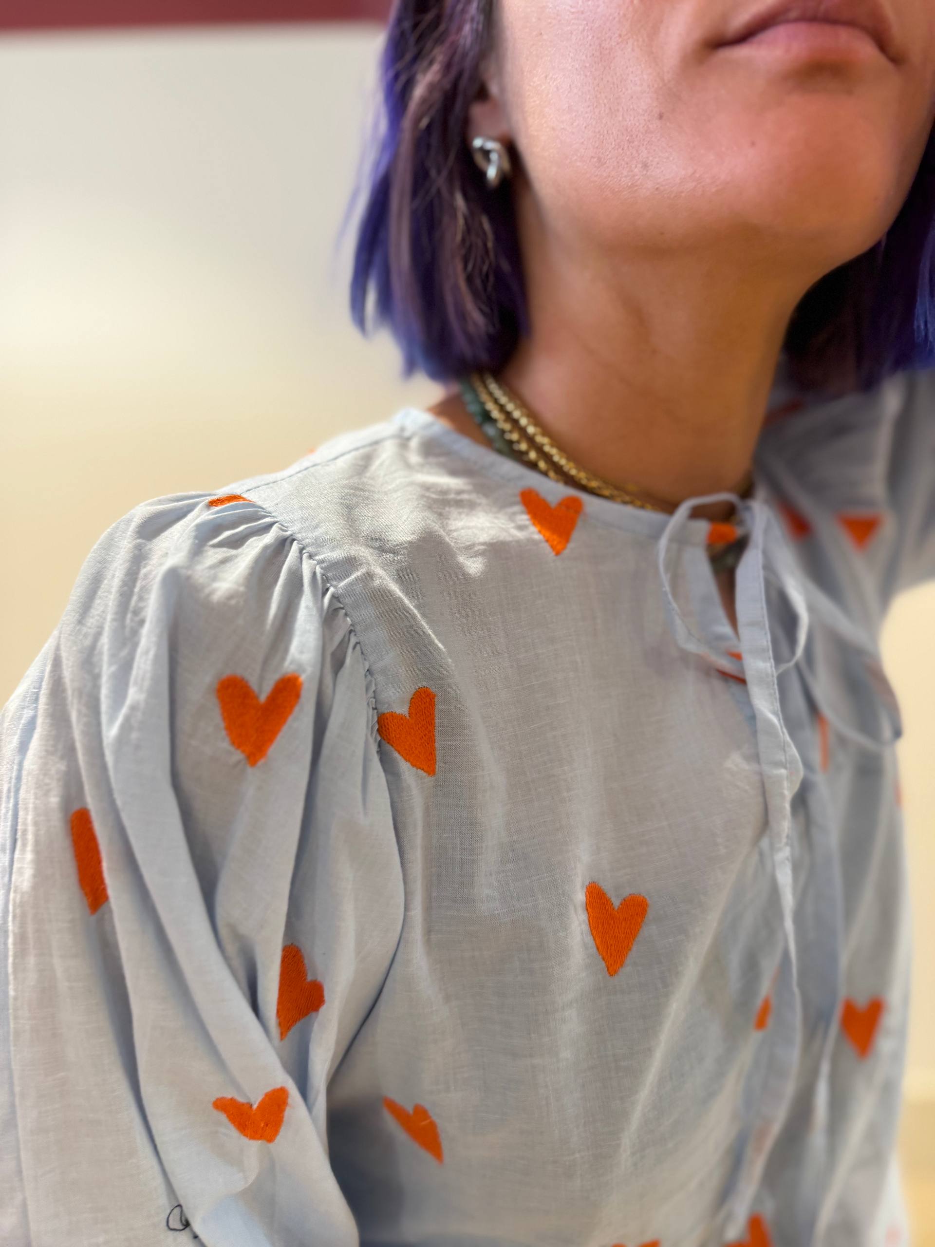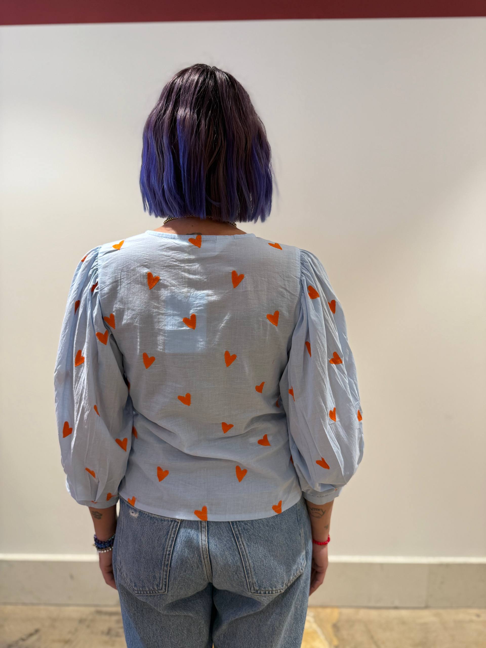 celeste con cuori arancioni