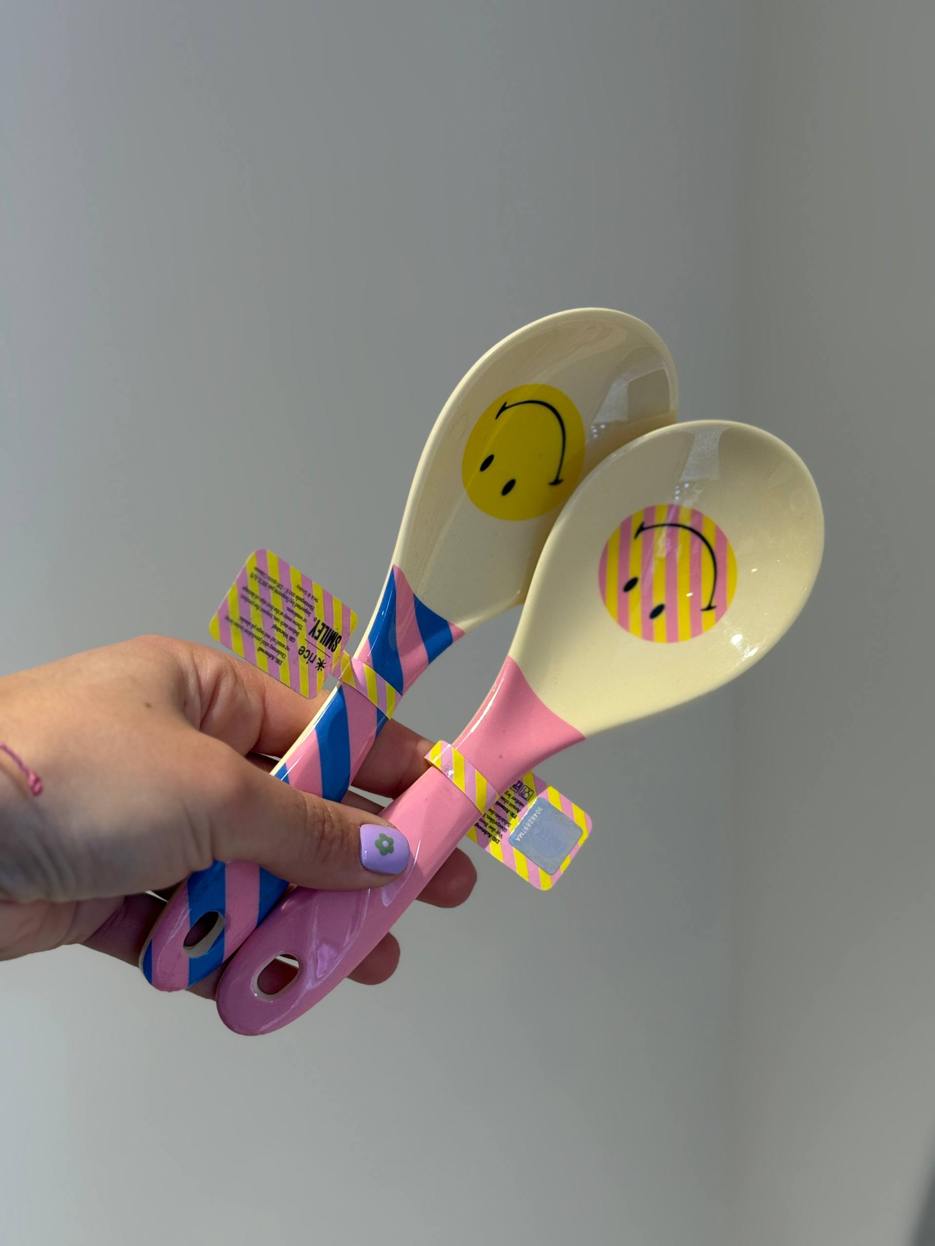 Cucchiaio grande con disegno smile disponibile in due varianti di colore. Perfetto per ogni occasione, usalo per il picnic, feste o semplicemente per la tua insalata. Questo prodotto è realizzato in melamina, un materiale durevole e pratico. Può andare in lavastoviglie ma non è adatto al microonde.
