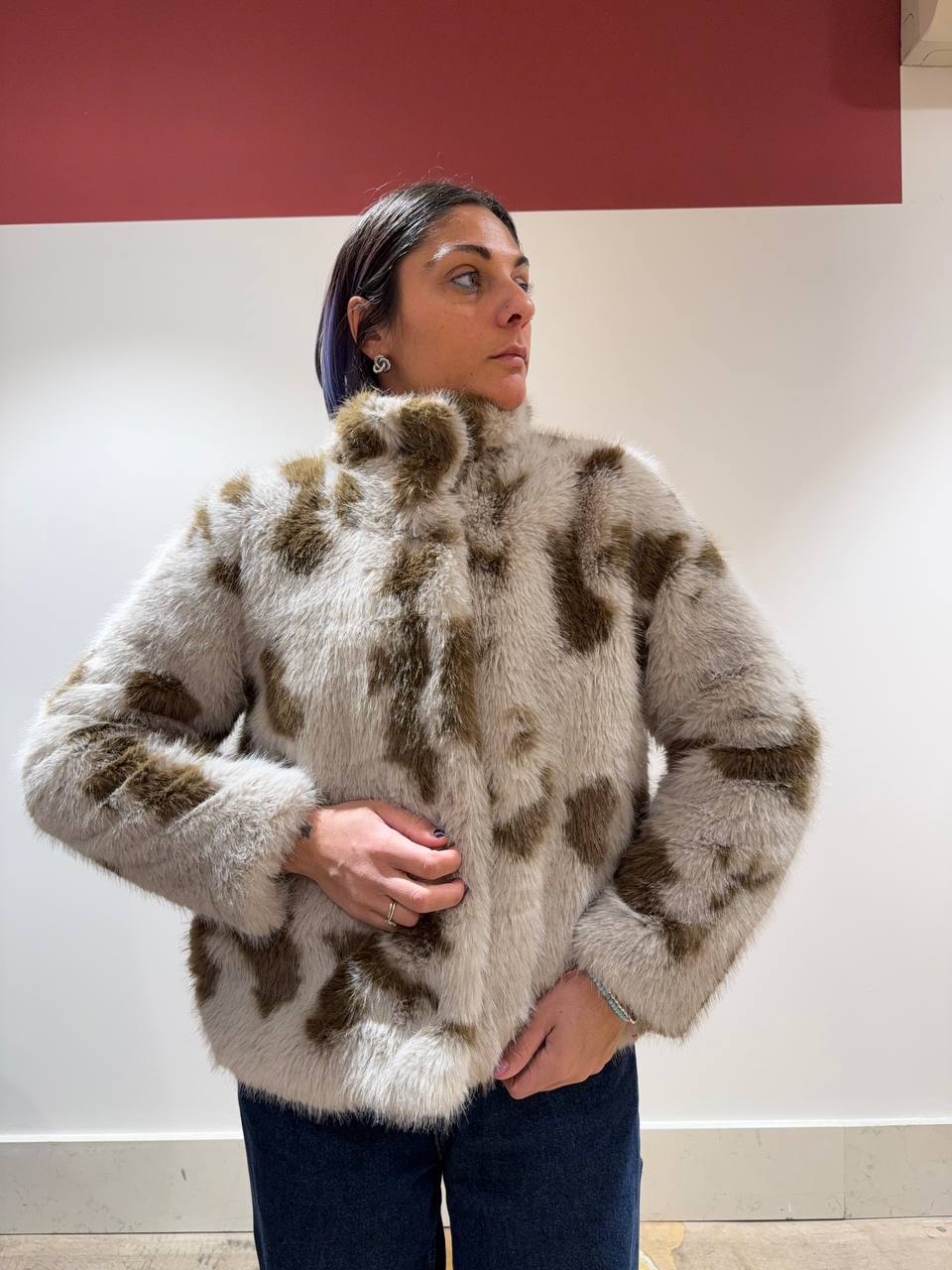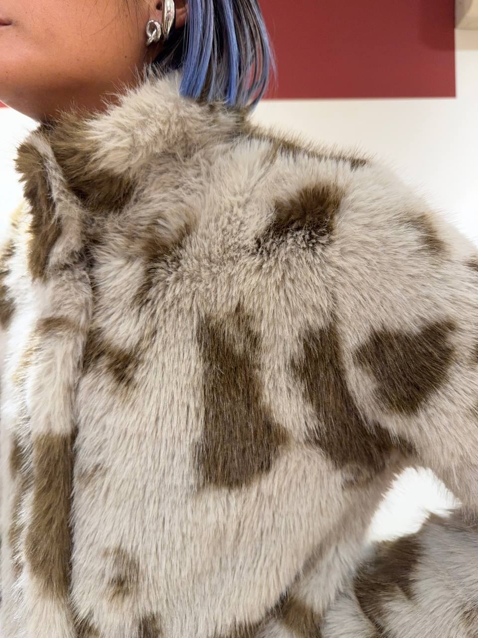 Eco pelliccia muccata corta con bottoni e tasche. Super soffice, calda e avvolgente.