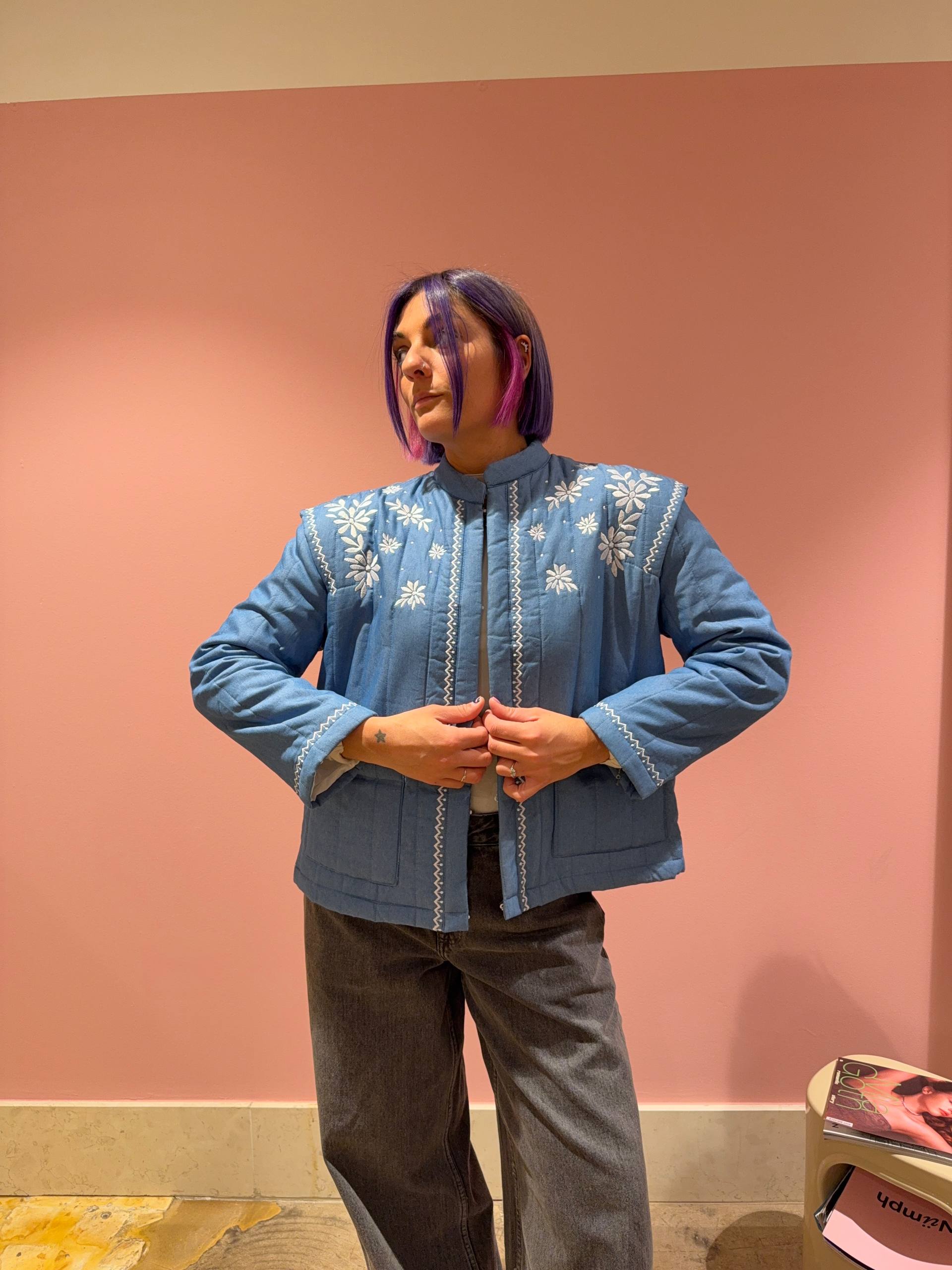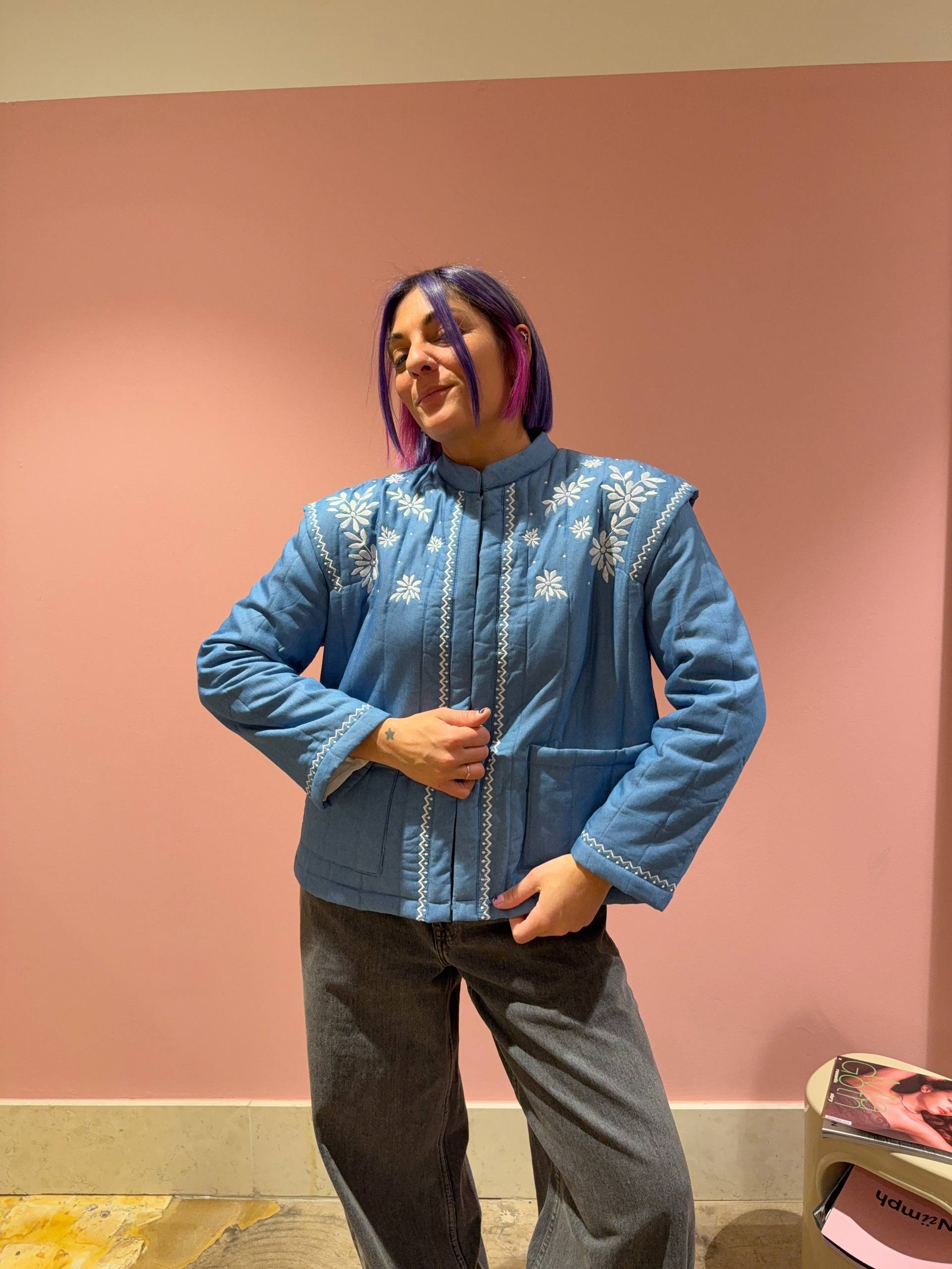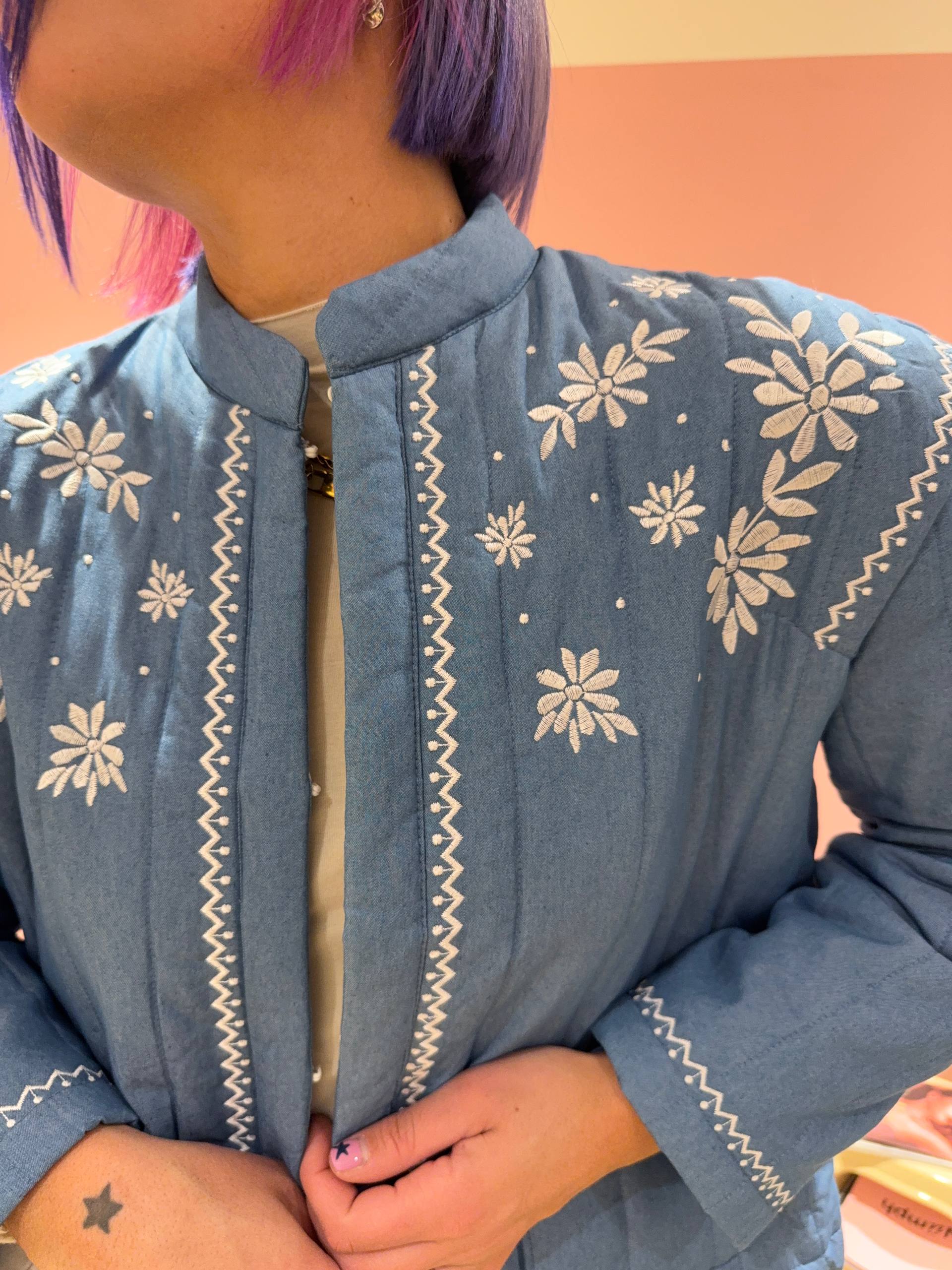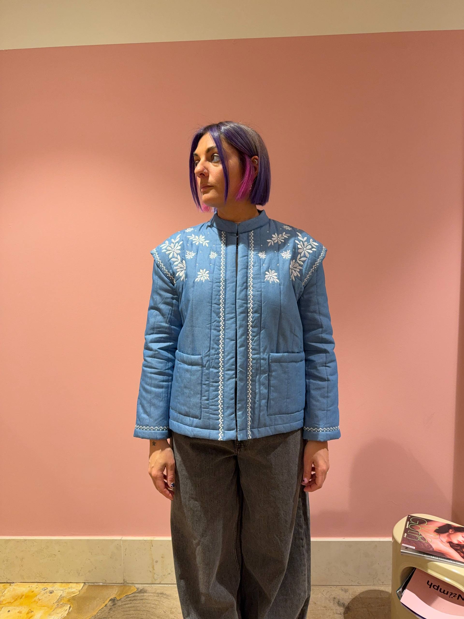 Giacca jeans  trapuntata con ricami. Vestibilità normale. Taglia unica.
