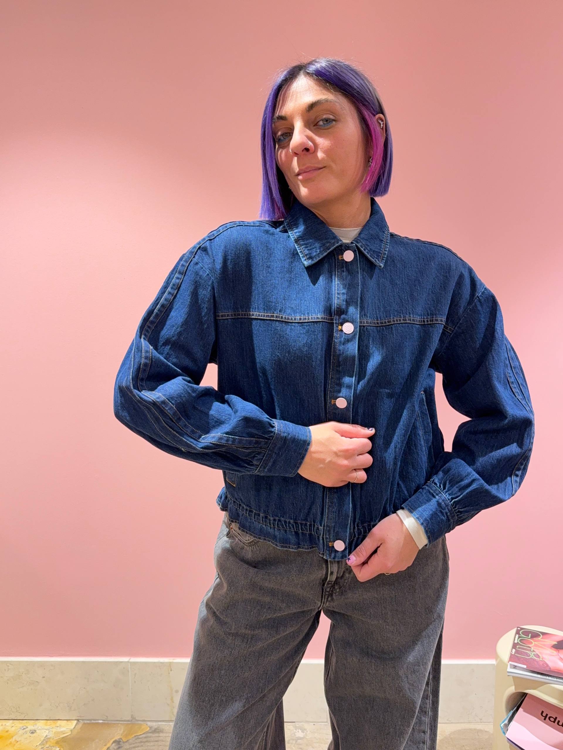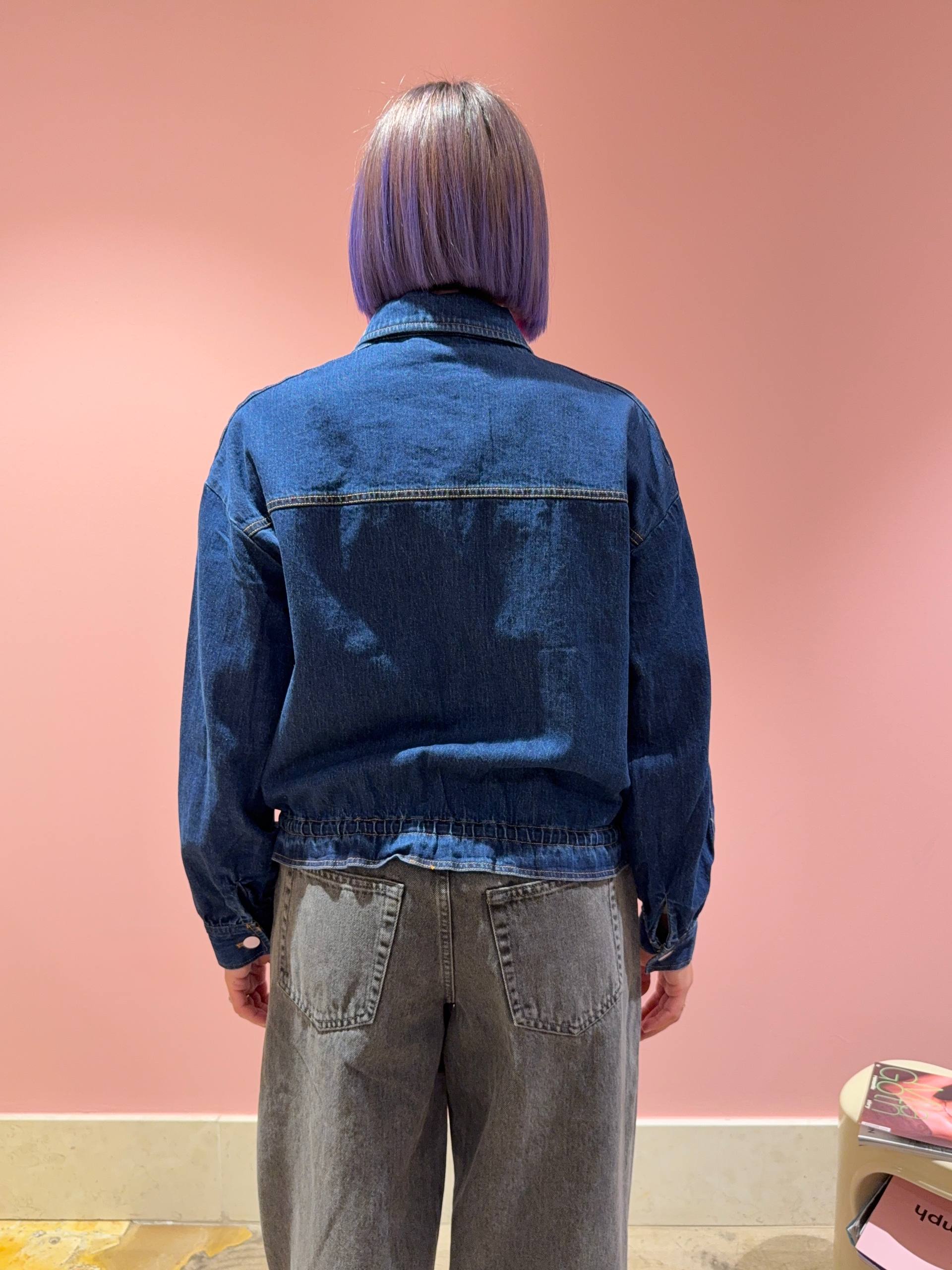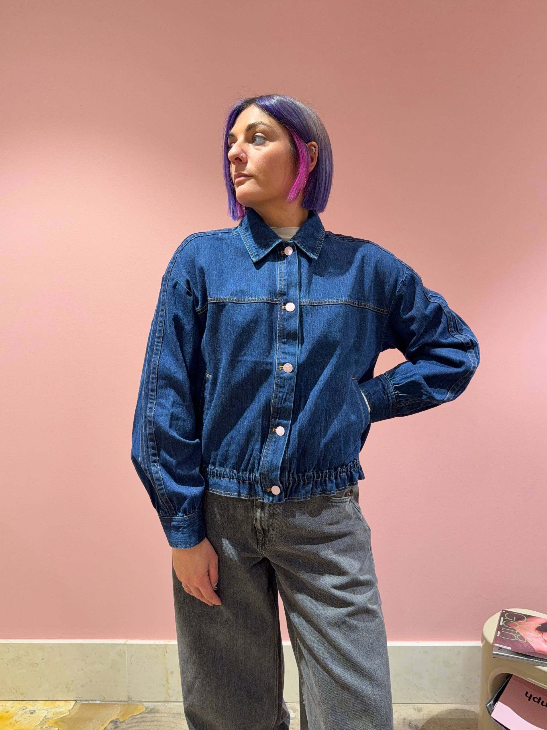 Giacca in denim scuro con elastico in vita.
