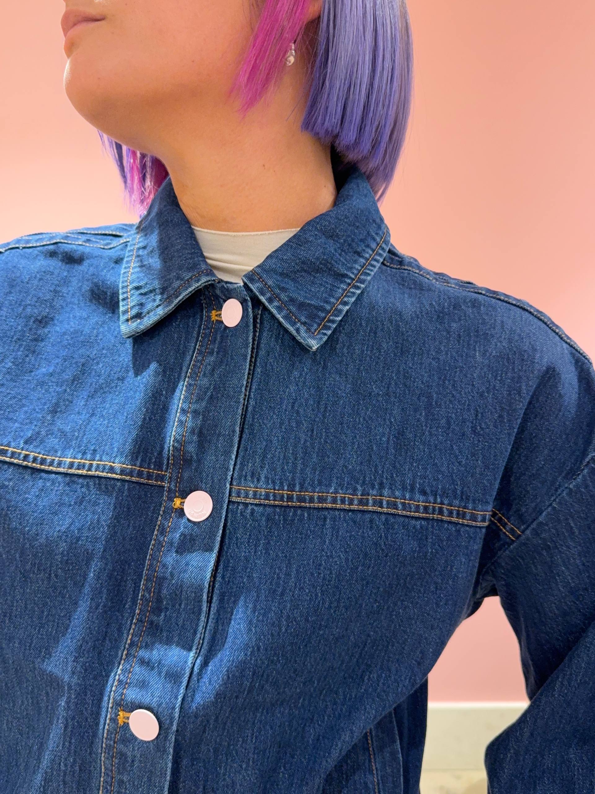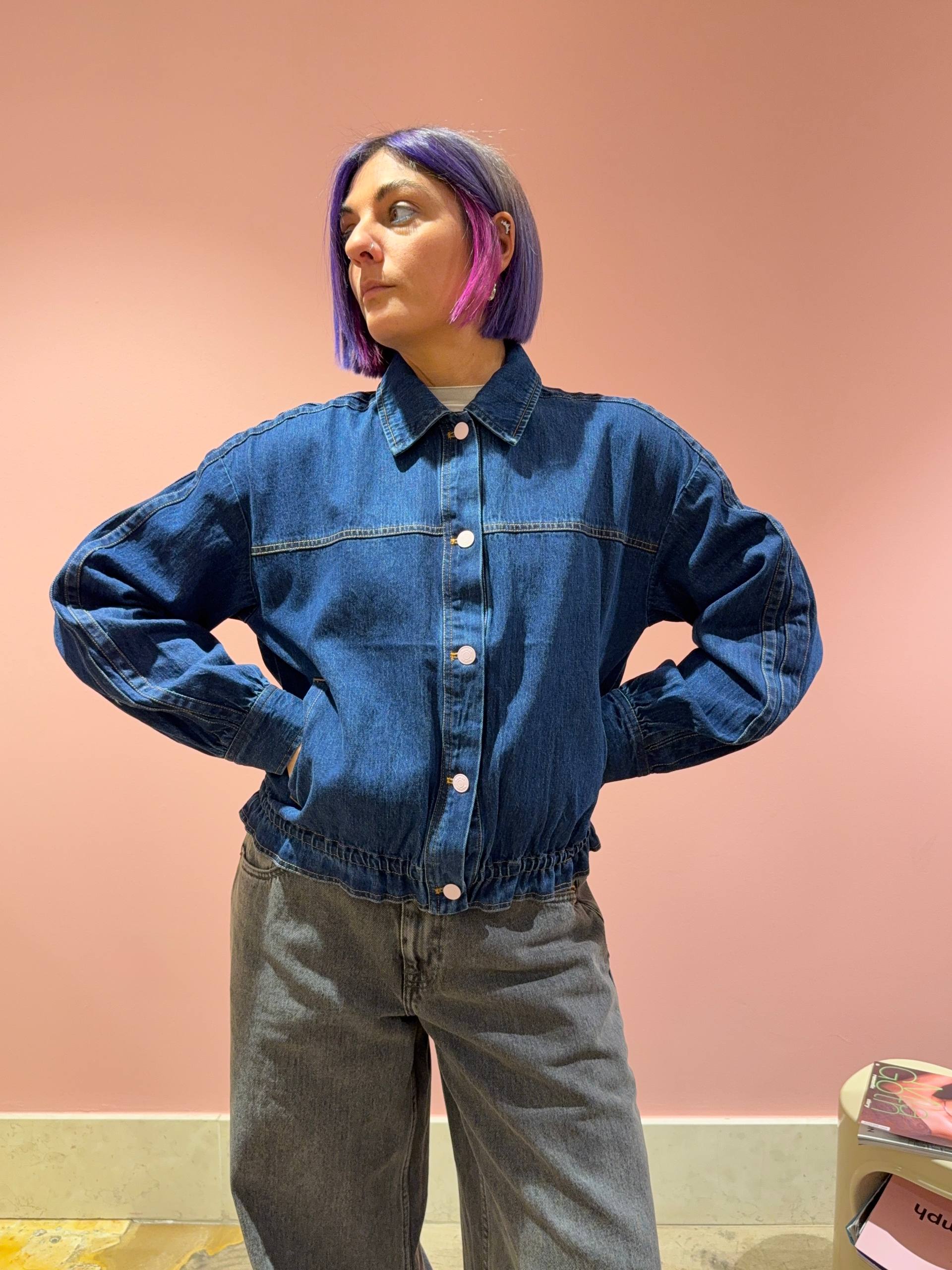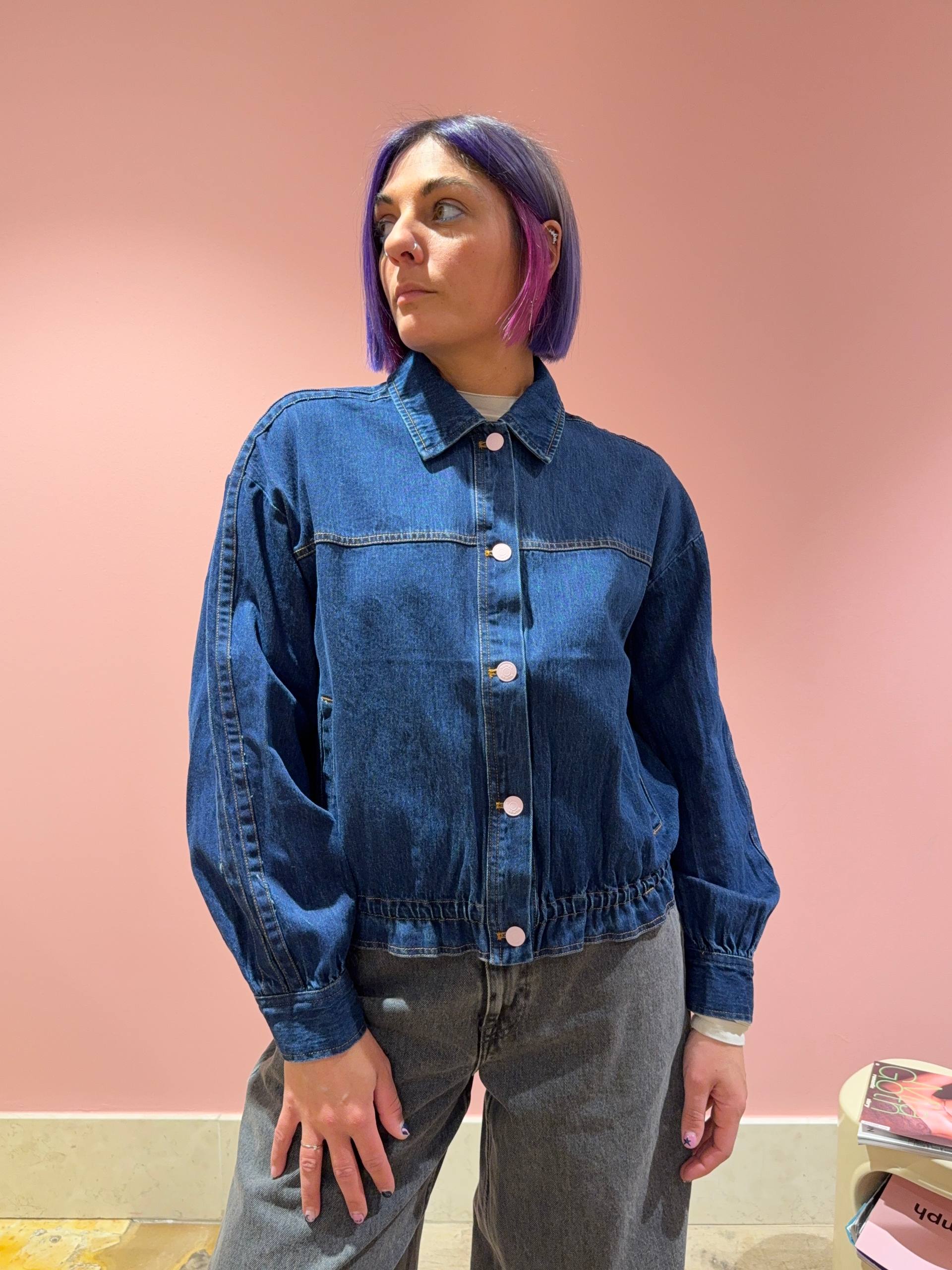 Giacca in denim scuro con elastico in vita.