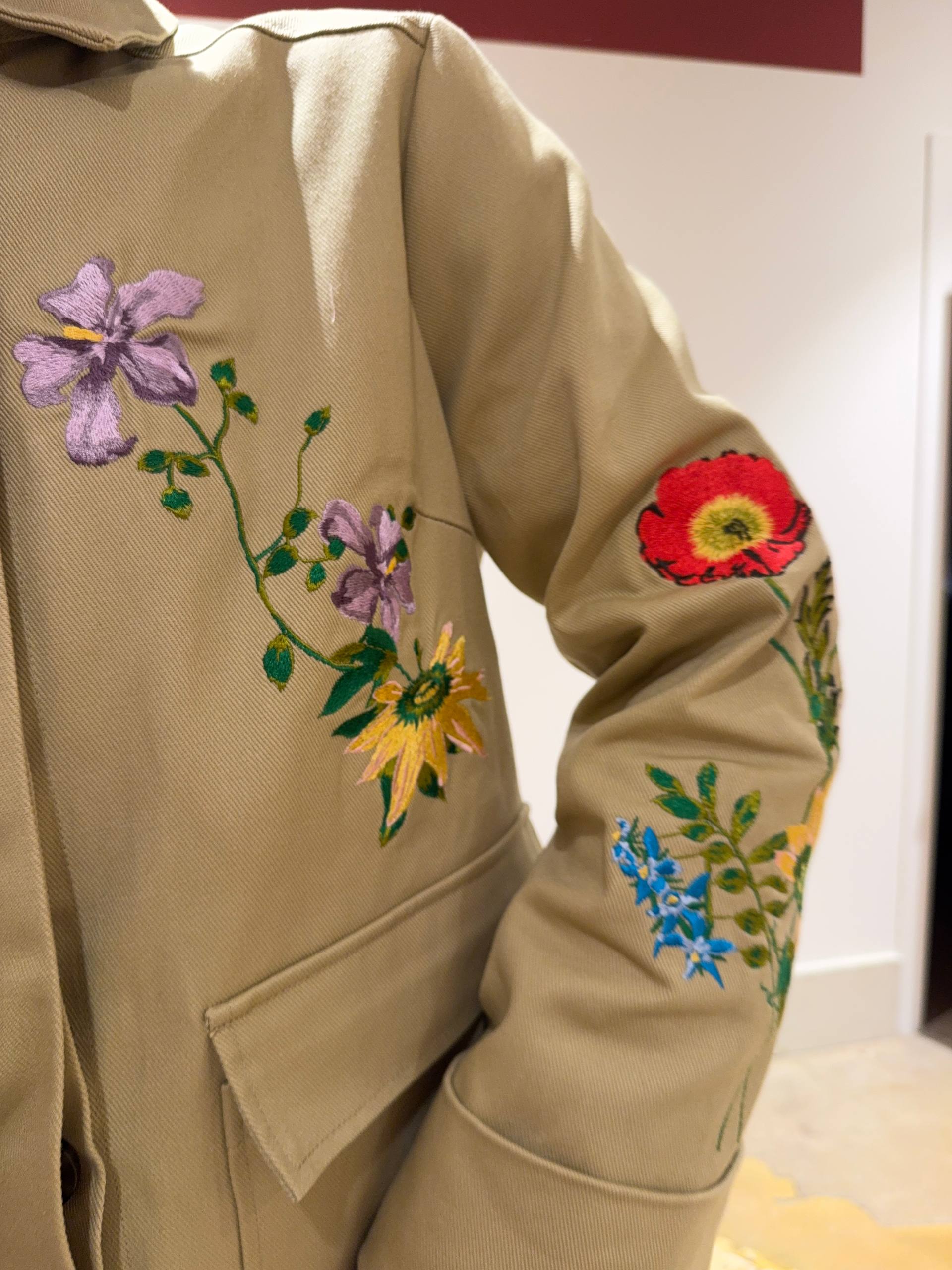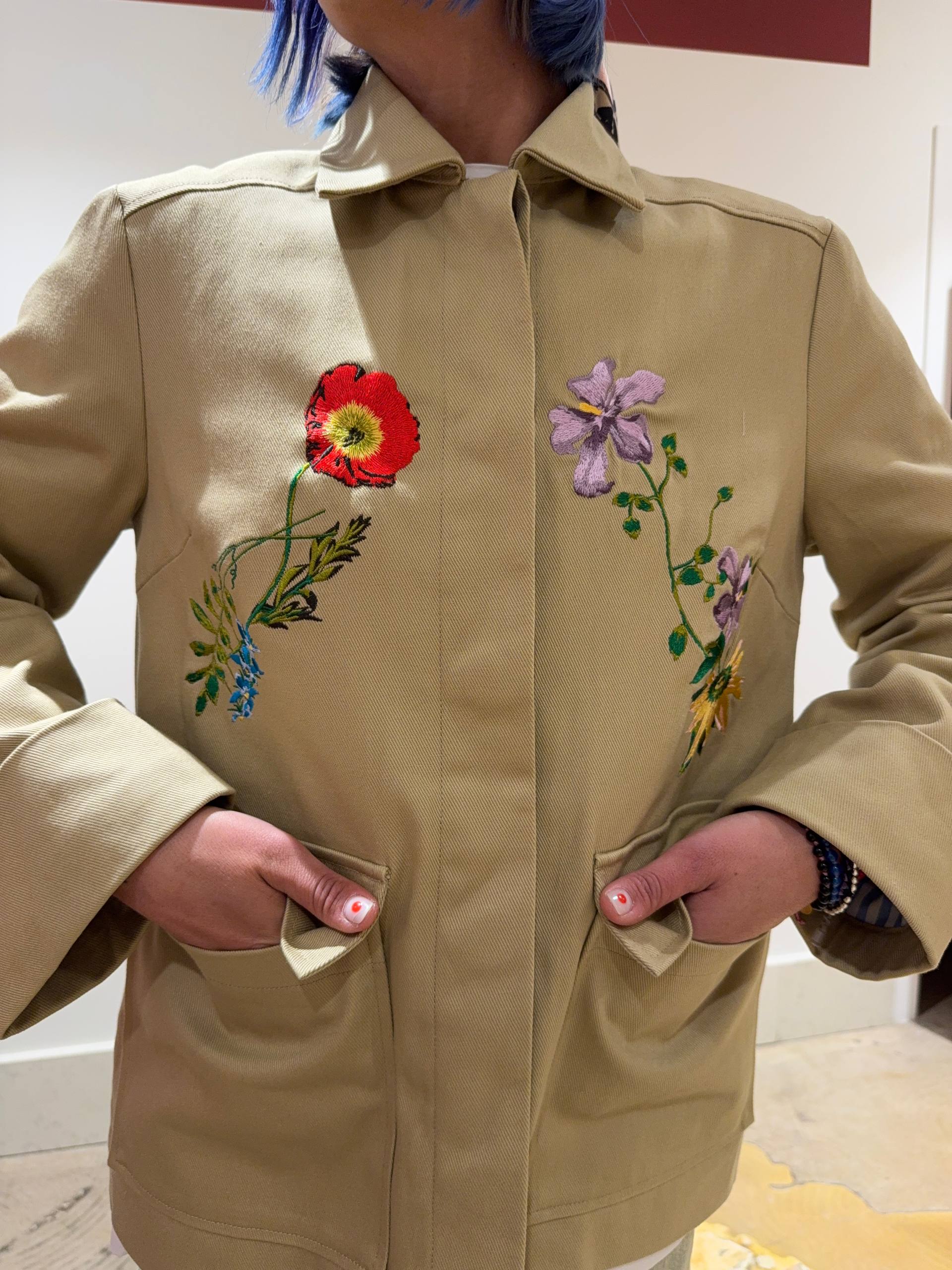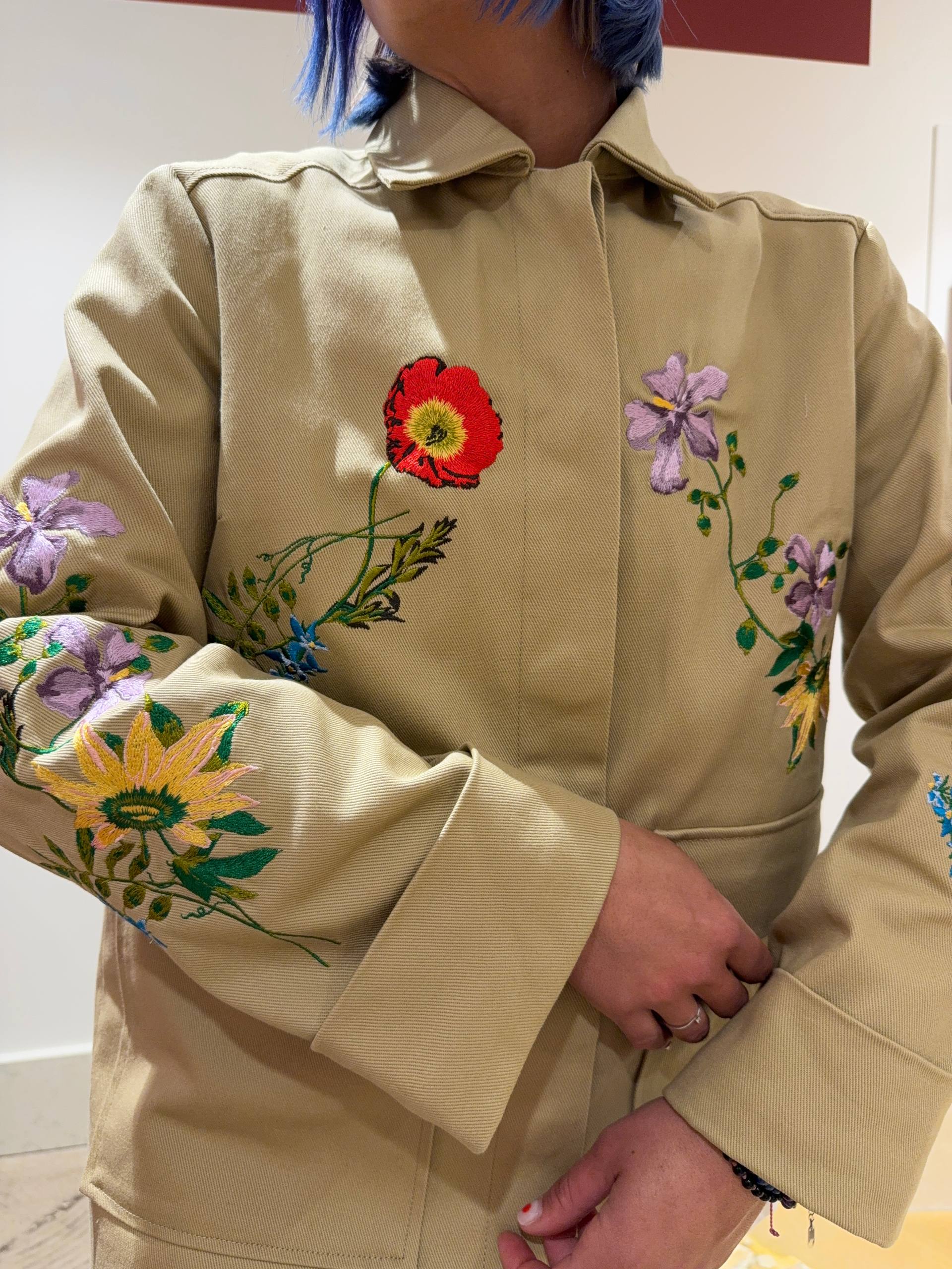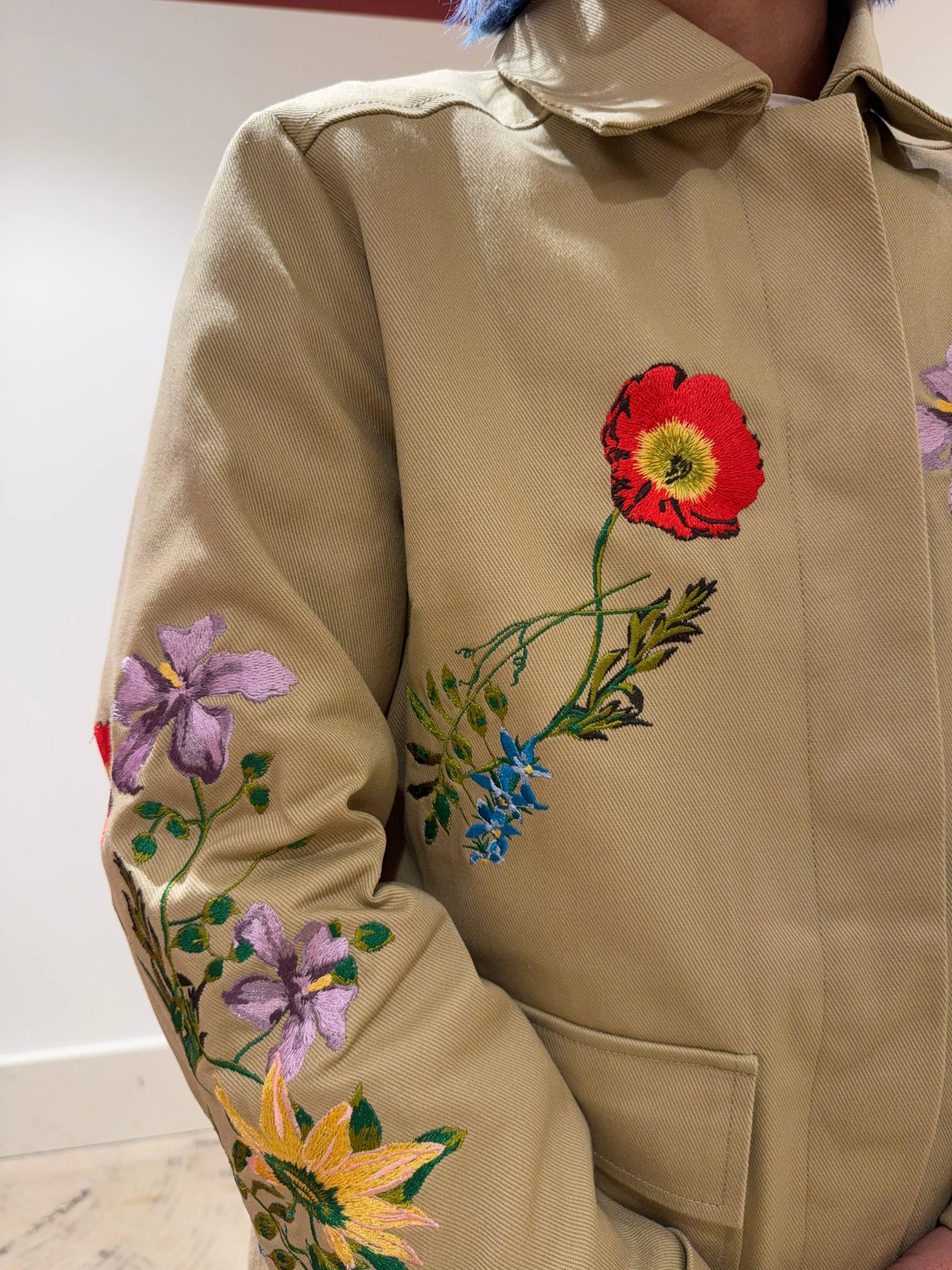 Giacca parka con fiori ricamati