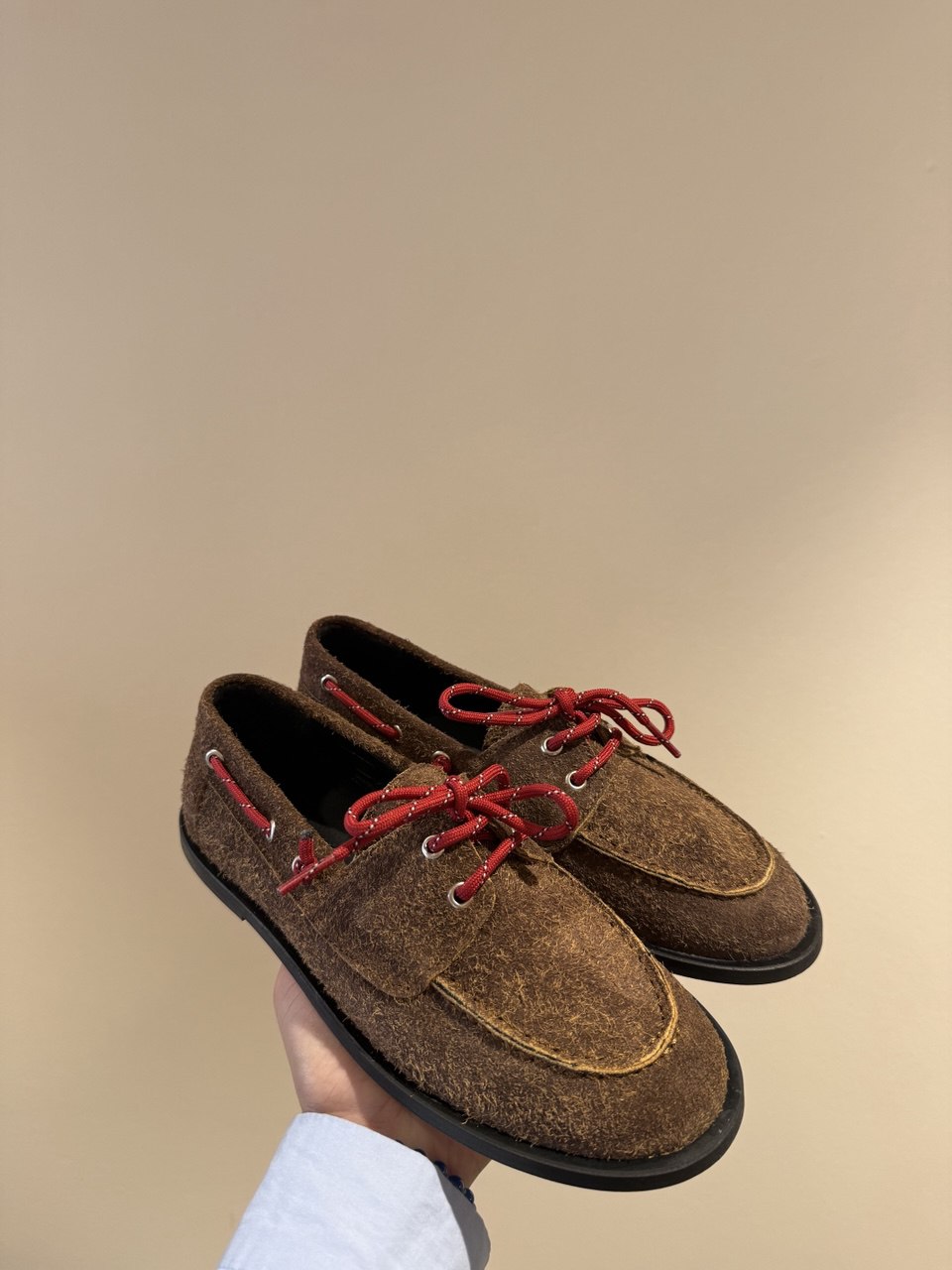 Ariete è un mocassino da barca piatto realizzato in Portogallo in morbida pelle pull-on dalla sensazione naturale. Il suo design raffinato rivisita un classico senza tempo, combinando eleganza e funzionalità in una silhouette leggera e versatile. Il sistema di allacciatura e i dettagli cuciti a mano sulla tomaia aggiungono carattere e autenticità, mentre la sua costruzione flessibile garantisce comfort a ogni passo. Una scarpa pensata per accompagnarti con stile ogni giorno, fedele alla tradizione ma con un tocco contemporaneo.