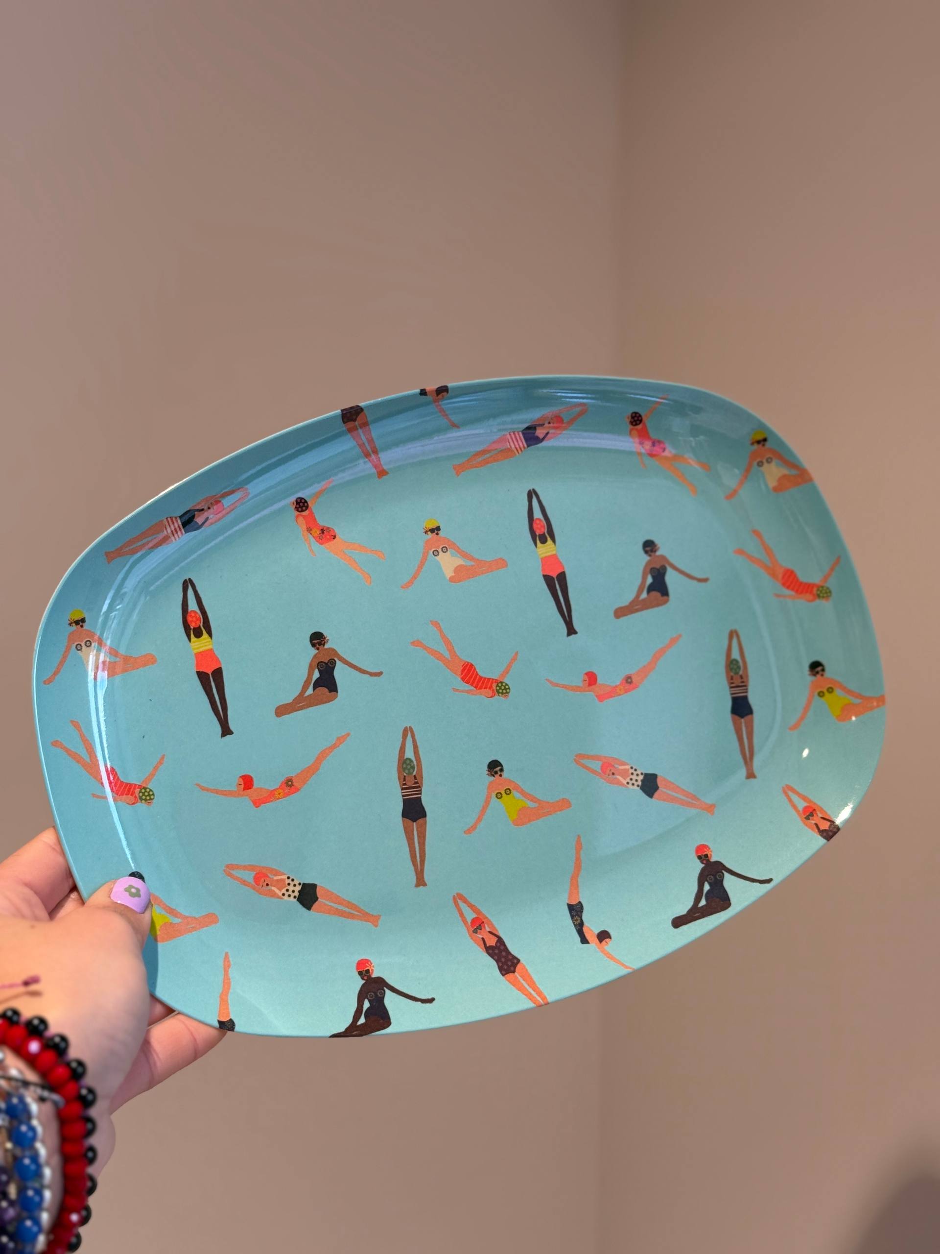 Piatto rettangolare in melamina con nuotatrici. Perfetto per i pasti.