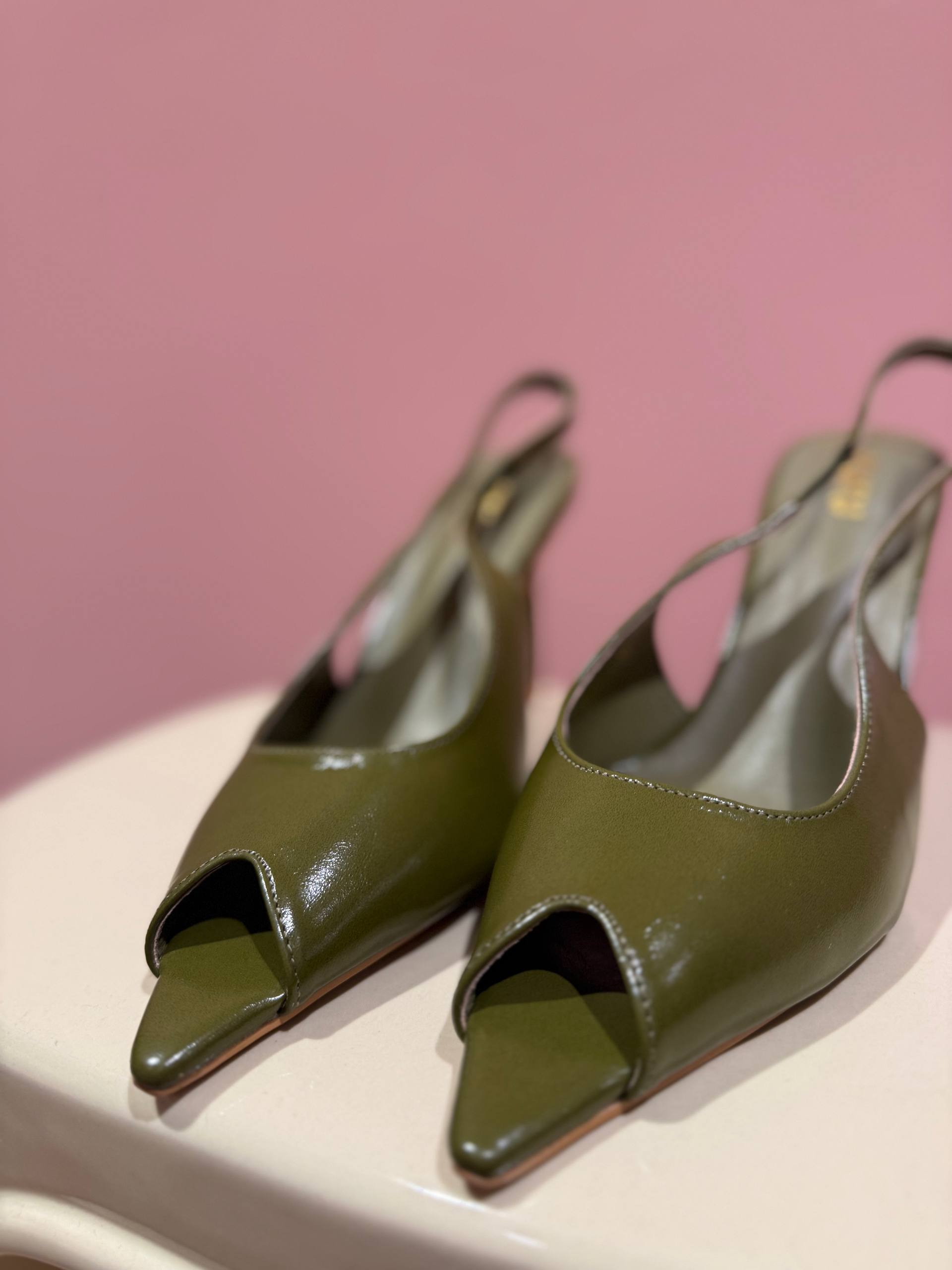 Sandalo con tacco verde oliva