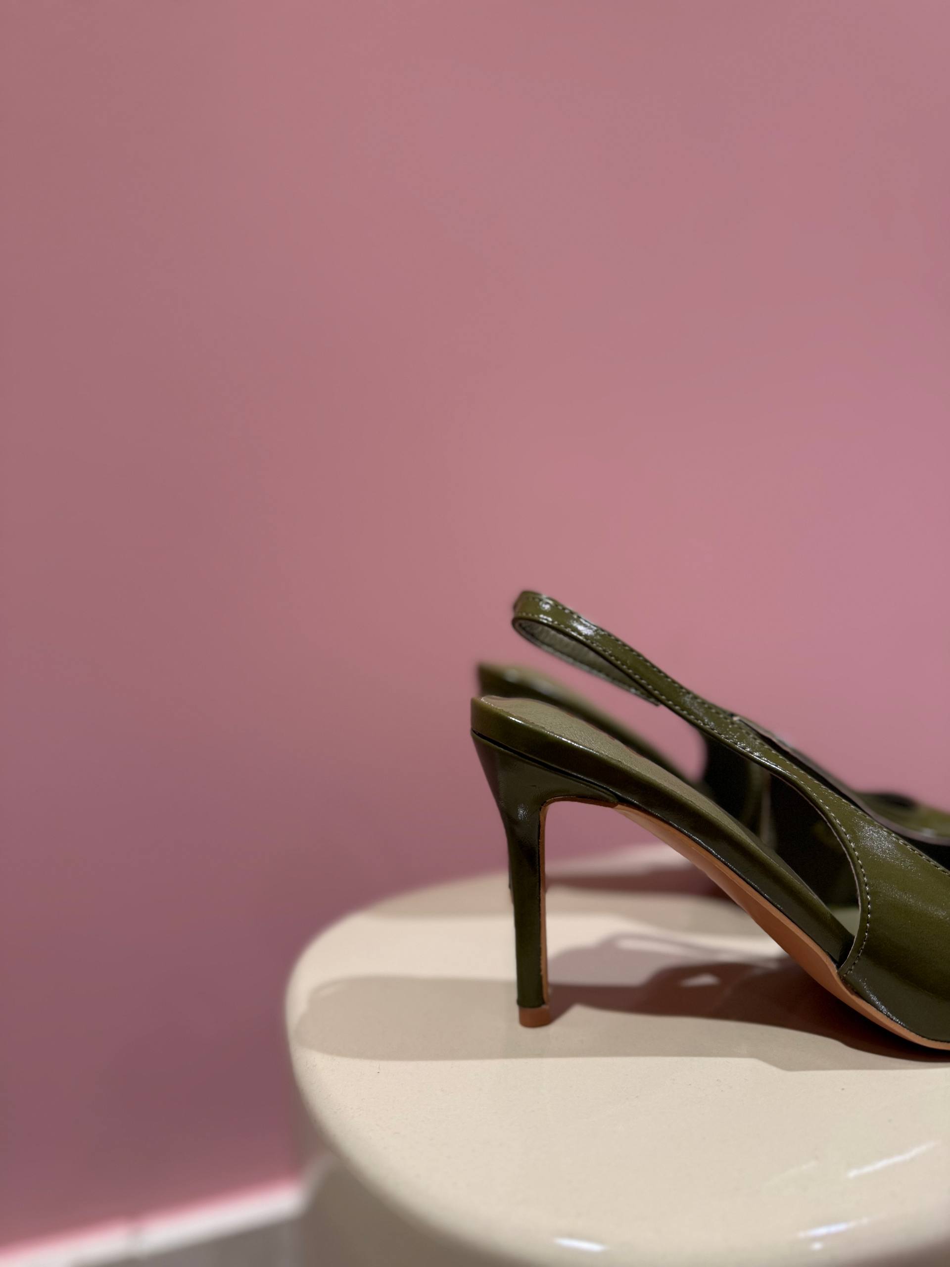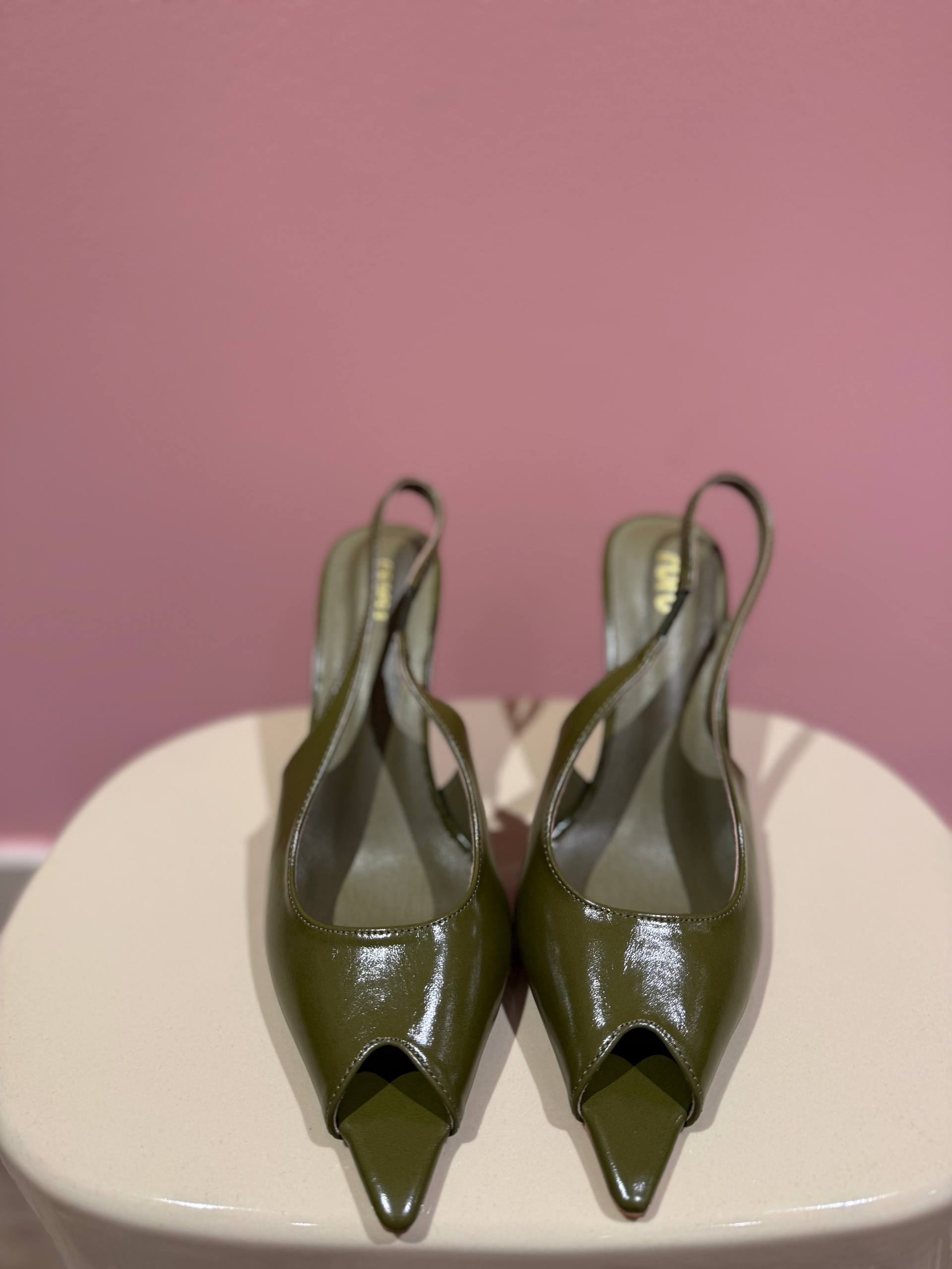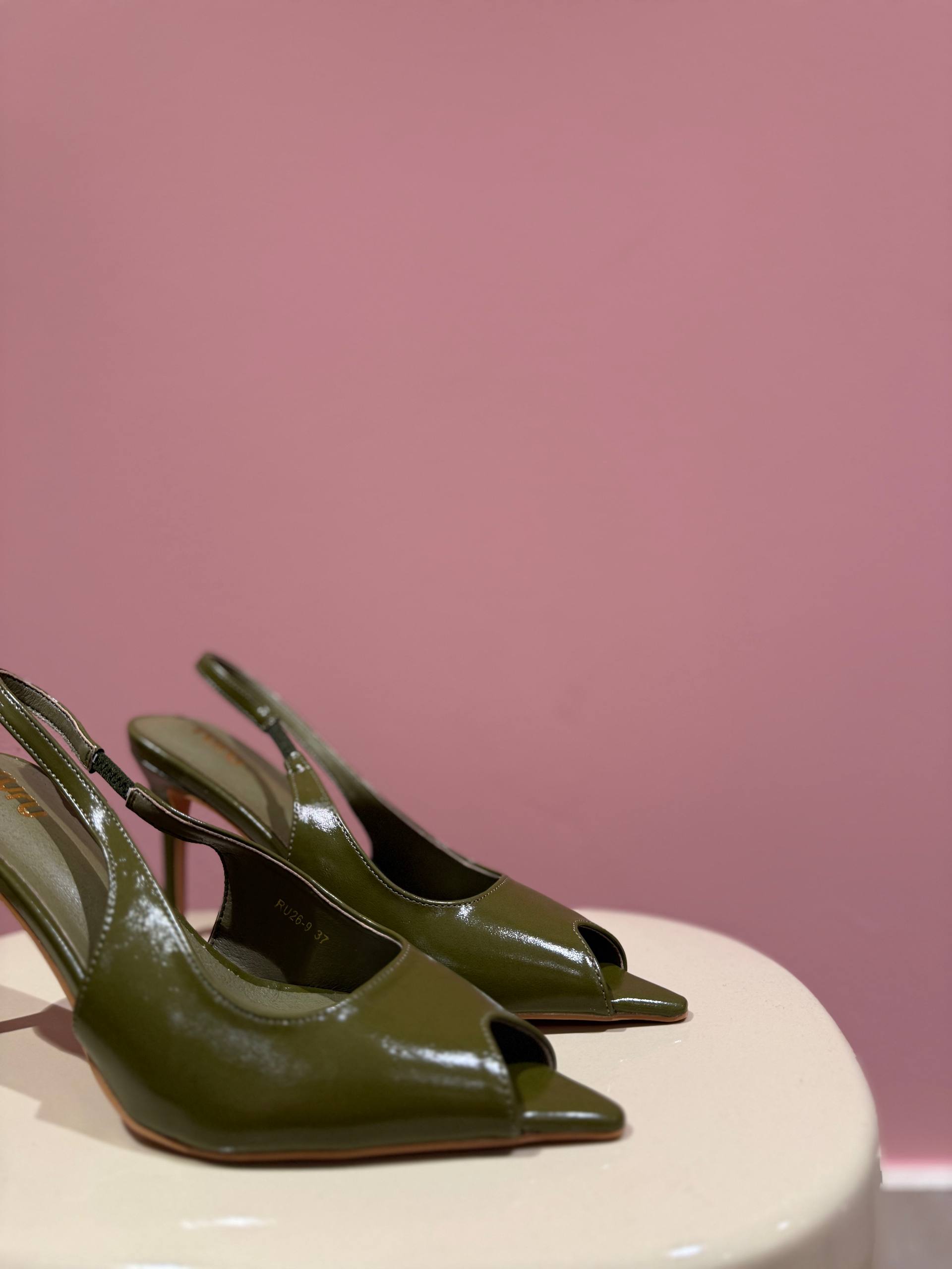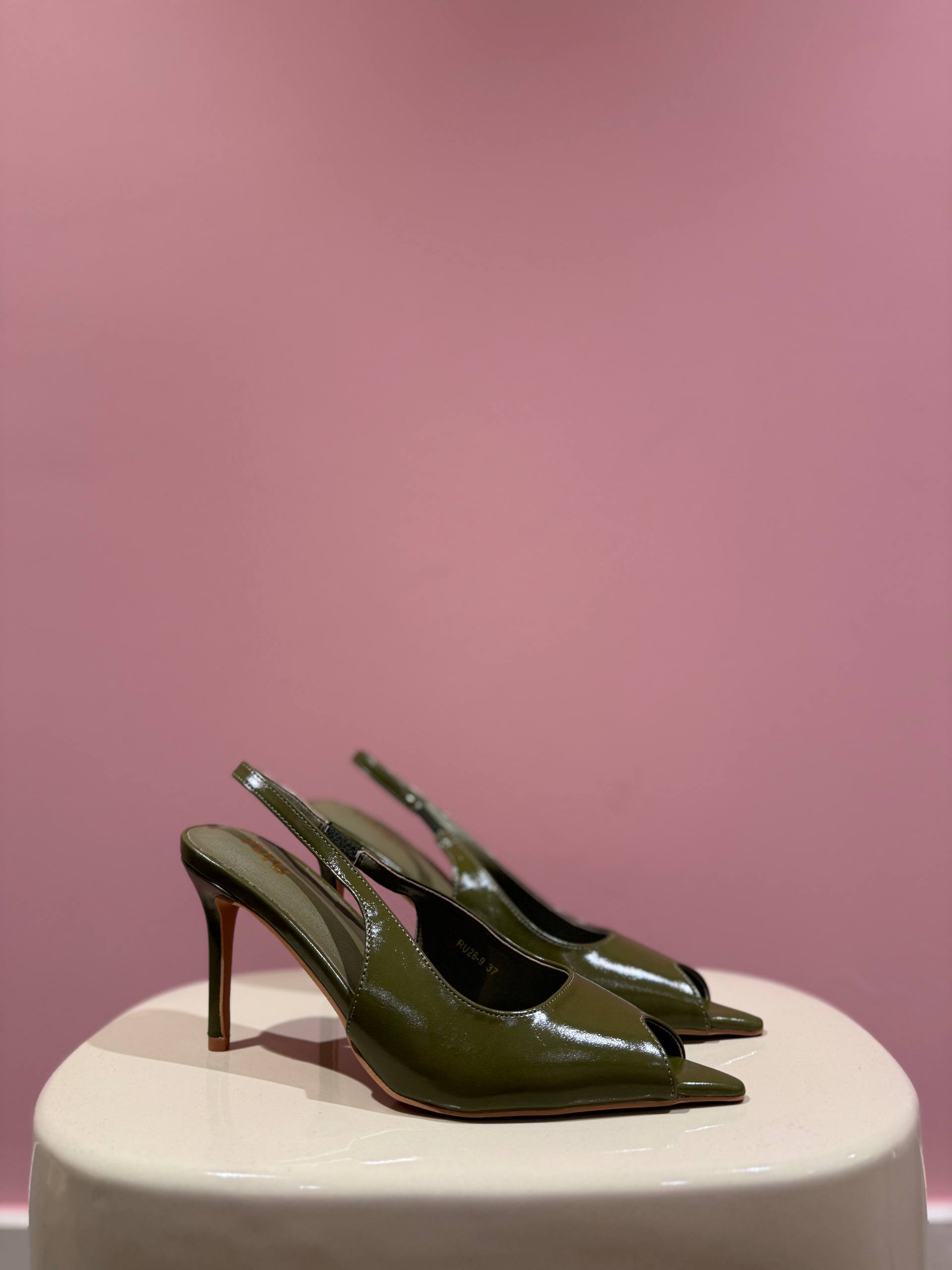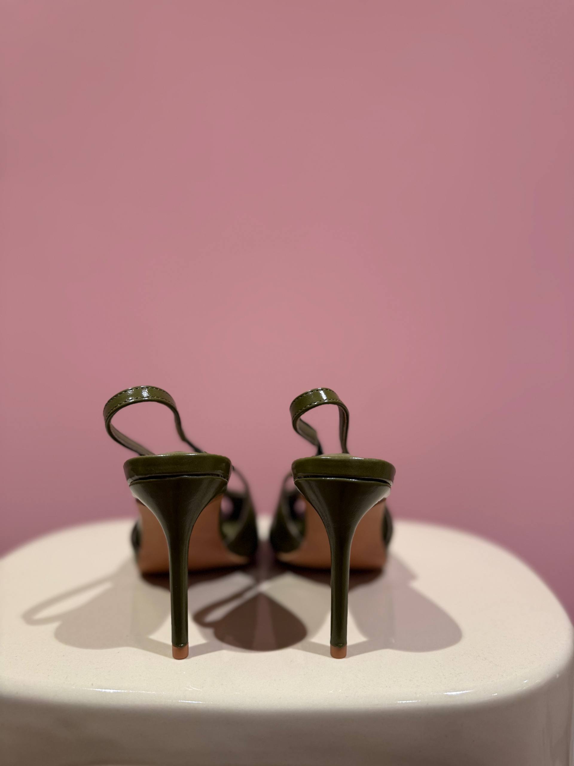 Sandalo con tacco color verde oliva. Tacco 9 cm.